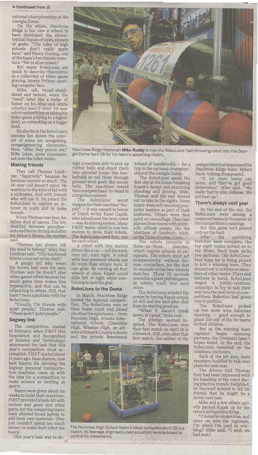 Article about the Robo Lions and other GA teams at nationals in 2006.