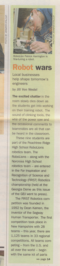 Intro on article about the Robo Lions from the Gwinnett Business Journal.