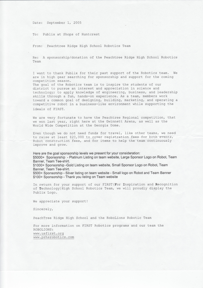 | current | 19:43, 30 March 2010 | ![]() | 707 × 1,000 (449 KB) | Tanner (Talk | contribs) | Letter to Kroger to request for sponsorship in 2005. |