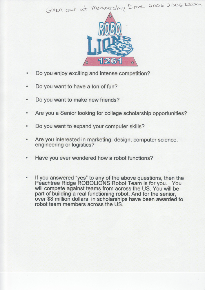 | current | 19:41, 30 March 2010 | ![]() | 707 × 1,000 (553 KB) | Tanner (Talk | contribs) | A paper meant to recruit members for the 2006 season. |